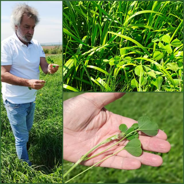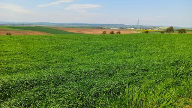 V září 2020 jsme na pozemcích ve Švábenicích zaseli pícninový pokus, jehož cílem bylo vyhodnotit výnosnost a kvalitu směsi složené z 20 kg jílku jednoletého (odrůda Jívet) a 5 kg jetele nachového (odrůda Rokali) na hektar. Tento pokus byl zaset na svažitém pozemku, který je náchylný k vodní erozi. Směs tedy hrála dvojí roli – nejenom produkční, ale také ochranářskou. Hustý porost od září až do května sloužil jako přirozená ochrana proti vodní i větrné erozi.