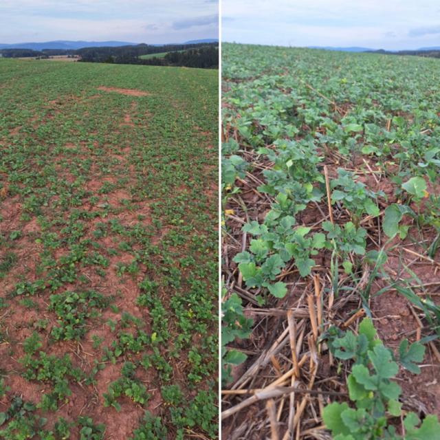 Výsev proběhl 15. srpna 2024 s dávkou 20 kg/ha. Půda byla připravena dvojnásobným diskováním, což zajistilo ideální podmínky pro klíčení a růst.